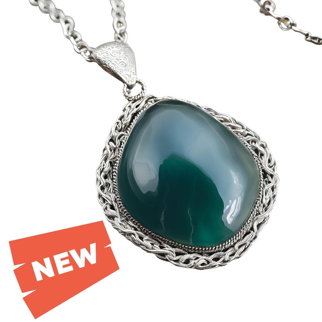 CADENA PLATA CON AGATA VERDE