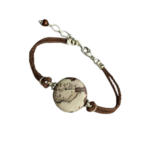Pulsera con piedras naturales azules con broche circular en plata 950